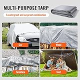 VEVOR Lona Protectora para Exteriores 487,7x609,6 cm Lona Impermeable de Polietileno de 10 mils, Resistente a los Rayos UV y a la Temperatura con Ojales Reforzados, Alta Durabilidad, Plateado/Marrón