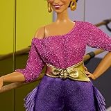 Barbie Signature Tribute Colección Debbie Allen Muñeca articulada con Parte Superior sin Hombros, cinturón Dorado y Pantalones de Flecos morados con Calentadores, JBJ24