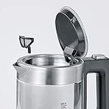 SEVERIN - Mini hervidor de agua 0,5 l, jarra eléctrica de cristal pequeña con filtro antical lavable, base de 360° giratoria y inalámbrica, libre de BPA, acero inoxidable, 1100 W, WK 3472