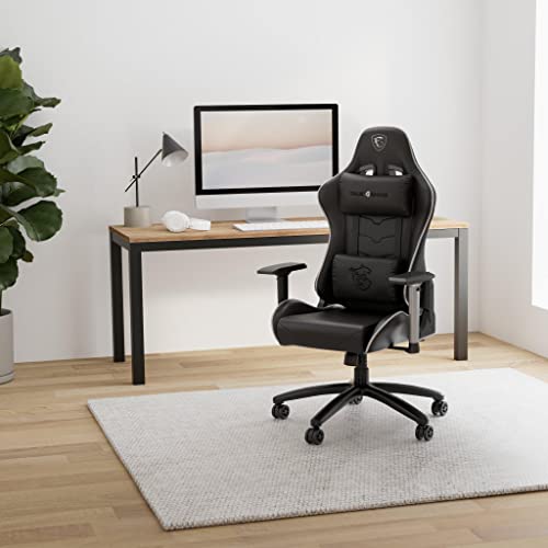 MSI mag CH120 I Silla Gaming - Cuero PVC Negro con Ribetes Grises, Soporte Estilo Carreras, Reclinación 180°, Cojín Lumbar y Reposacabezas Ajustables, Reposabrazos 4D - Máximo 150kg/330lb