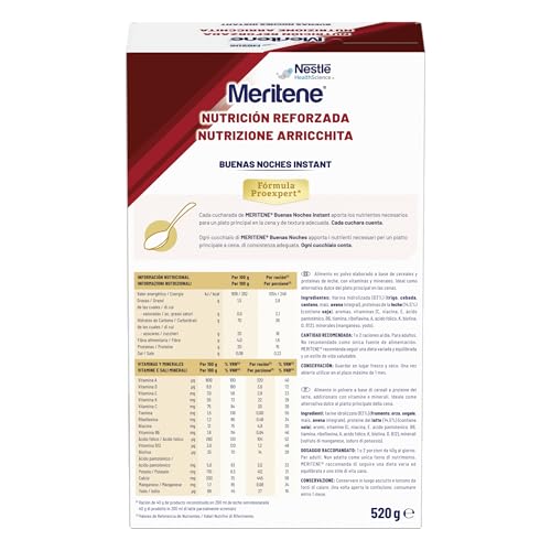 Meritene Nutrición Reforzada Buenas Noches | Crema de Cereales para Cena | Rica en Proteínas, Vitaminas y Minerales | Sin Azúcar Añadida | Fácil de Ingerir | Para Personas Mayores | 520g
