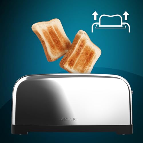 Cecotec Tostadora Vertical 2 Ranuras Largas Toastin' time 1500 Inox Lite. 1500 W, 4 Rebanadas de Pan, Ranura Ancha 3,8 cm, Soporte para Panecillos y Bandeja Recogemigas, Acero Inoxidable