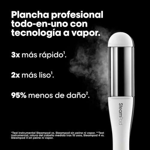 L’Oréal Professionnel,SteamPod 4,Plancha de Pelo Profesional con Tecnología a Vapor, Moldeador Todo en Uno, Alisa, Ondula y Riza, Cuidado Avanzado del Cabello, Todo Tipo de Cabello, Color Blanco