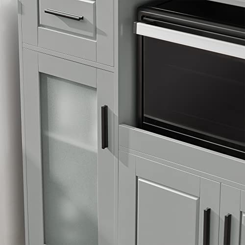 SoBuy Aparador para microondas con ruedas 3 puertas y 1 cajón madera gris