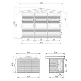 Caseta De Jardín De Madera Con Piso, Mostrador Y Puerta Cinco Ventanas - Exteriores H232x336x263 Cm/6 M2 - Puesto De Jardin Venta, Kiosko Bar, Kiosco Mercado Y Eventos Timbela M150b