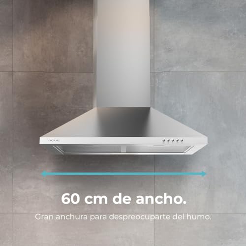 Cecotec Campana Extractora Piramidal de 60cm Bolero Flux PM 603500 Inox B. Motor 65W, Acabado Inox, Succión 350m3/h, Control Mecánico, 3 Niveles de Potencia, Luz y Filtro de Carbono