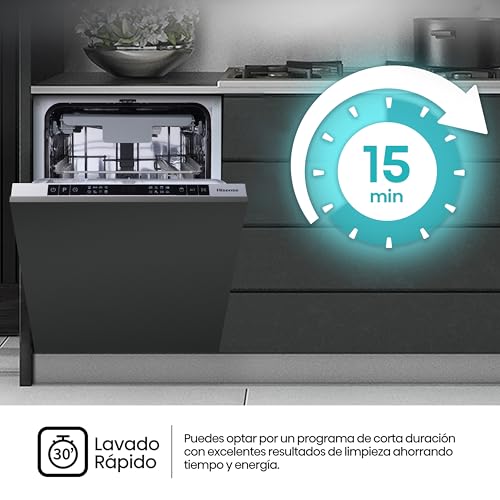 Hisense HV543D10 - Lavavajillas 45Cm, Encastre, Clase D, CAPACIDAD 11, Tecnología Inverter, Apertura Automática de Puerta, 3er Bandeja, Lavado Rápido 30', Integrable