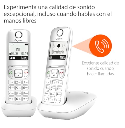 Gigaset A690 Duo - Dos Teléfonos DECT Inalámbrico - Pantalla Gráfica en Blanco y Negro Iluminada - Gran Autonomia, Blanco [Versión Española]