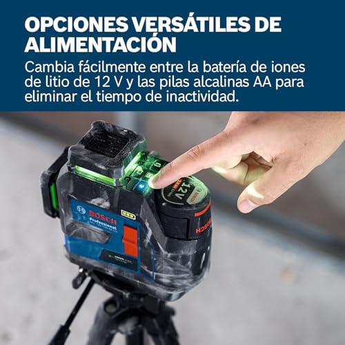 Nivel láser GLL 12V-100-33 CG de Bosch Professional (3 láseres verdes de 360°, 100 m de alcance (radio) con receptor, IP 65, Levelling Remote, LB 10, DK 20, GBA 12V 2.0Ah, GAL 12V-40, funda, L-Boxx)