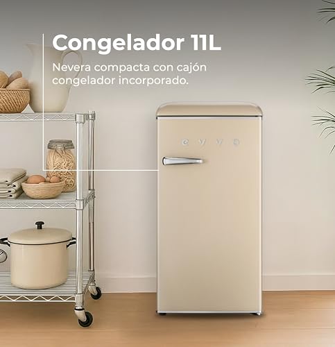 Evvo Frigorífico Mini F26 Retro Beige, 95 L, Diseño Vintage, Bajo Consumo, Silencioso