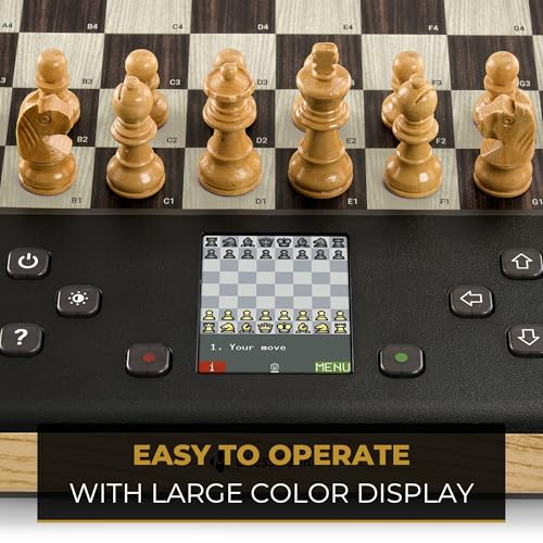 Millennium ChessGenius Pro Wood Edition - Elegante aspecto de madera con piezas de madera auténtica, ideal para jugadores aficionados con funciones de aprendizaje de IA