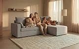 BUDWING Leah Sofá Cama Esquinero 3 Plazas - Chaise Longue Reversible y 2 Cojines Decorativos – Tapizado en Poliéster – Estilo Moderno – 233x124x69 cm – Gris Claro