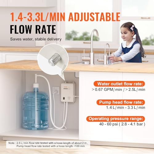 VEVOR Sistema de Bomba Dispensadora de Agua Embotellada, Sistema Dispensador de Más de 2,5 L/min, Bomba de Jarra de Agua de Entrada Única, Uso Compatible con Máquina de Café/Té o Hielo, Refrigerador