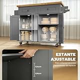 HOMCOM Isla de Cocina con Ruedas Carro de Cocina con 2 Cajones 4 Puertas Especiero Encimera de Madera Estante Ajustable y Barra Lateral para Comedor 111x44,5x82,5 cm Gris