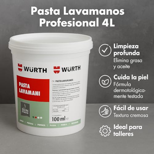 WURTH Pasta Lavamanos Xtrem 4L, limpiador de Manos industrial para mecanicos, Suciedad Extrema, Grasa, aceite, Pintura, masilla, siliconas con Microesferas Vejetales, Detergente Aroma a lavanda