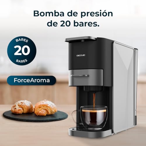 Cecotec Cafetera Cápsulas Compacta FreeStyle Compact Dark Roast. 4 en 1, 1350W, 20 Bares, Apta para Café Molido, Dolce Gusto, Nespresso, ESE pod y Senseo, Depósito 700ml