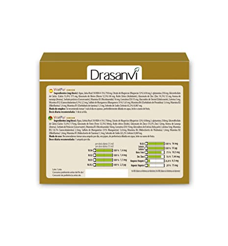 Drasanvi VITALPUR SENIOR Jalea Real 10 HDA 4-5 %| con Hierro, Magnesio, Selenio, Glutamina y Luteína| para el Cansancio y la Fatiga | 750 mg/día | con Stevia | 20 Viales = 20 Días | Sabor Naranja