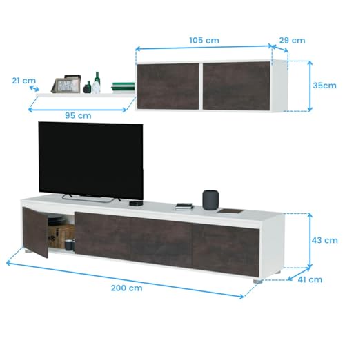 Habitdesign Mueble de Salon Moderno, Modulos de Comedor, Modelo Alida, Acabado en Blanco Artik y Oxido, Medidas: 200 cm (Ancho) x 43 cm (Alto) 41 cm (Fondo)
