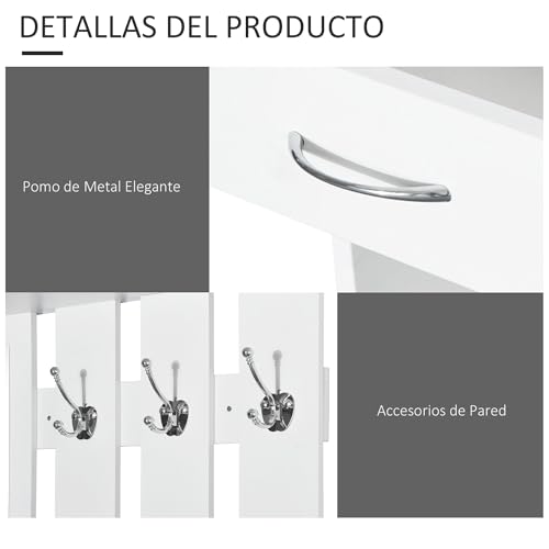 Homcom Conjunto de Muebles de Entrada Recibidor Pasillo Set de 3 Piezas Perchero Espejo Zapatero con Cajón 90x22x116cm Madera Blanco Aosom España