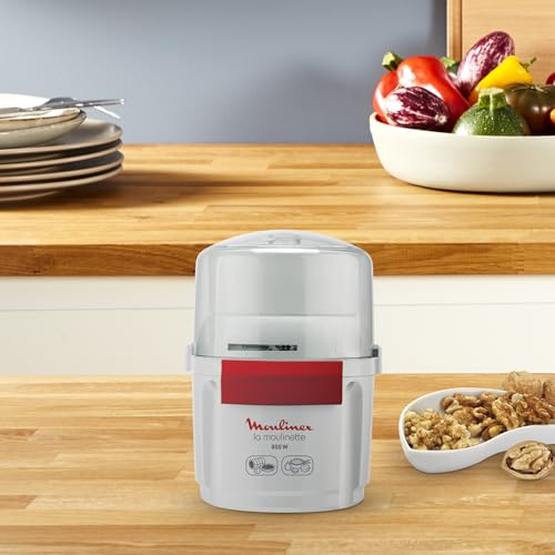 Moulinex Picadora la Moulinette, picadora de 800 W, pica carne, verduras, frutos secos, queso, 200 gr capacidad, pica, corta o mezcla, sistema 1-2-3, cuchilla doble acero inoxidable, blanco, AD5601