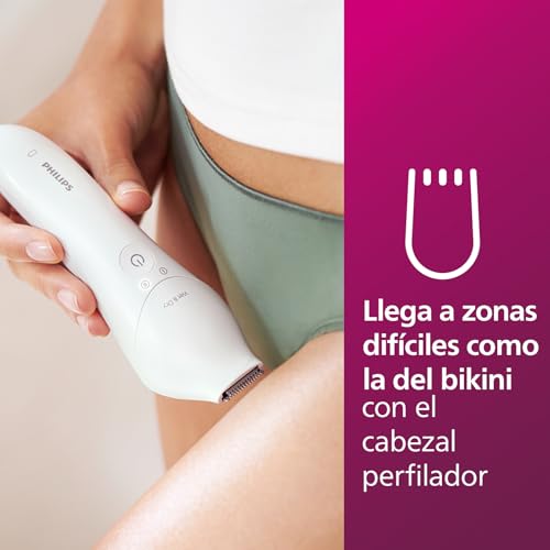 Philips Depiladora Mujer Serie 8000, 6 en 1, Para Cuerpo, Cara, Pies y Bikini, Uso en Seco o Humedo, Piel Suave desde Casa, Cabezal Ceramico, BRE715/00, Blanco