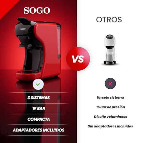 SOGO Cafetera Cápsulas 3 en 1 Compatible con Nespresso Dolce Gusto y Starbucks - Máquina de Café Compacta para Monodosis y Té - Cafetera Multicápsulas con 19 Bares de Presión Color Rojo