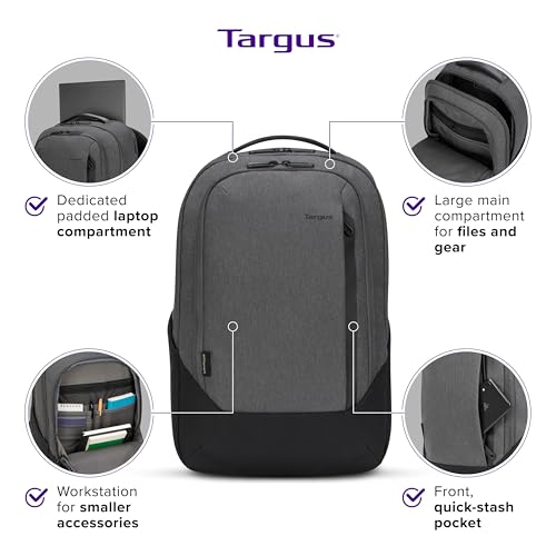 Targus TBB58602GL Mochila Hero Cypress 15.6" con Ecosmart - Gris Hecho de 26 Botellas de Agua de plástico recicladas Bandolera ergonómica Acolchada