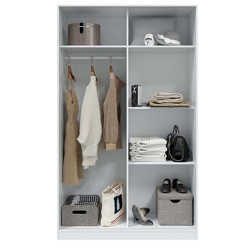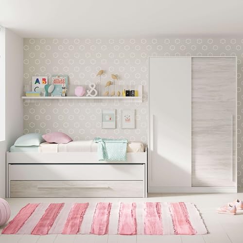 Habitdesign Armario 2 Puertas Correderas, 200x120x50 (AltoxAnchoxFondo - en cm), Color Blanco Artik y Blanco Velho, Modelo Elliot