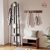 HOMCOM Perchero de Pie de 4 Niveles, con 4 Estantes, 8 Ganchos, Perchero de Entrada Recibidor con Estructura Metálica, para Colgar Ropa, Sombrero, en Pasillo, Sala de Estar, Dormitorio, Marrón Rústico