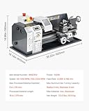 VEVOR Torno de Metal, 210 x 370 mm, Torno de Sobremesa de Precisión, Velocidad Variable de 0 a 2500 RPM, con Husillo de Engranajes de 550 W para Procesar Metales Blandos, Madera y Plásticos
