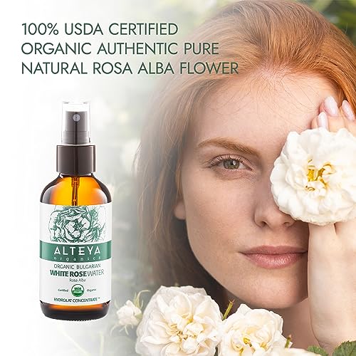 Alteya Organics Agua de Rosas Blancas en Espray 240 ml - 100% Certificada Orgánica por el USDA, auténtica agua de flores de rosa alba pura y natural destilada de Alteya Organics