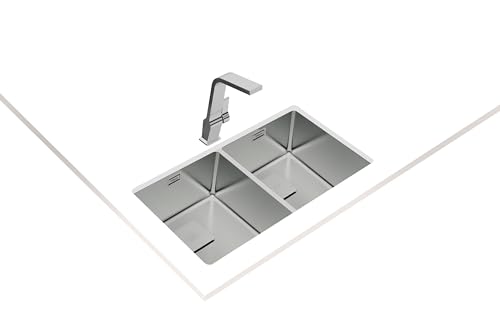 Teka FlexLinea RS15 2C 740 - Fregadero de 80 cm, 2 Cubetas, Triple Posibilidad de Instalación, Desagüe Cuadrado, SilentSmart, Tapa Decorativa, Color Acero Inoxidable