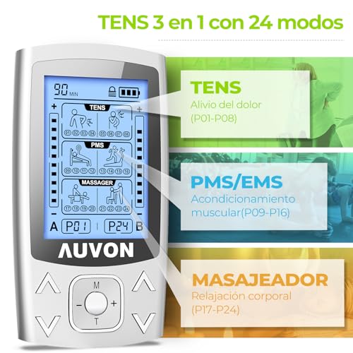 Electroestimulador muscular - AUVON 3 en 1 - TENS + EMS - Doble canal - Alivio del dolor