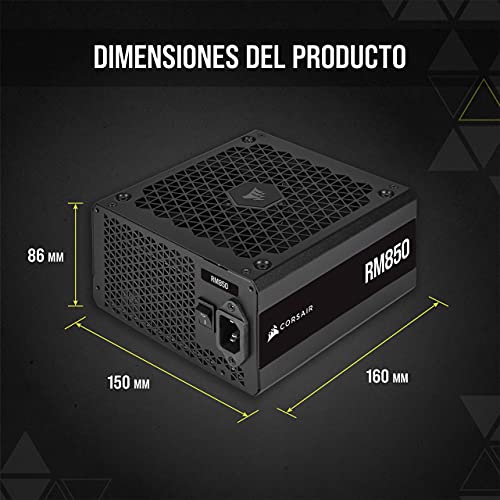 Corsair RM850 2021, RM Series, 850 Watts 80 Plus Gold Fuente de Alimentación ATX Totalmente Modular, Conectores Triples EPS12V, Poco Ruido, Modo de Zero RPM, Condensadores de 105 °C, Negro